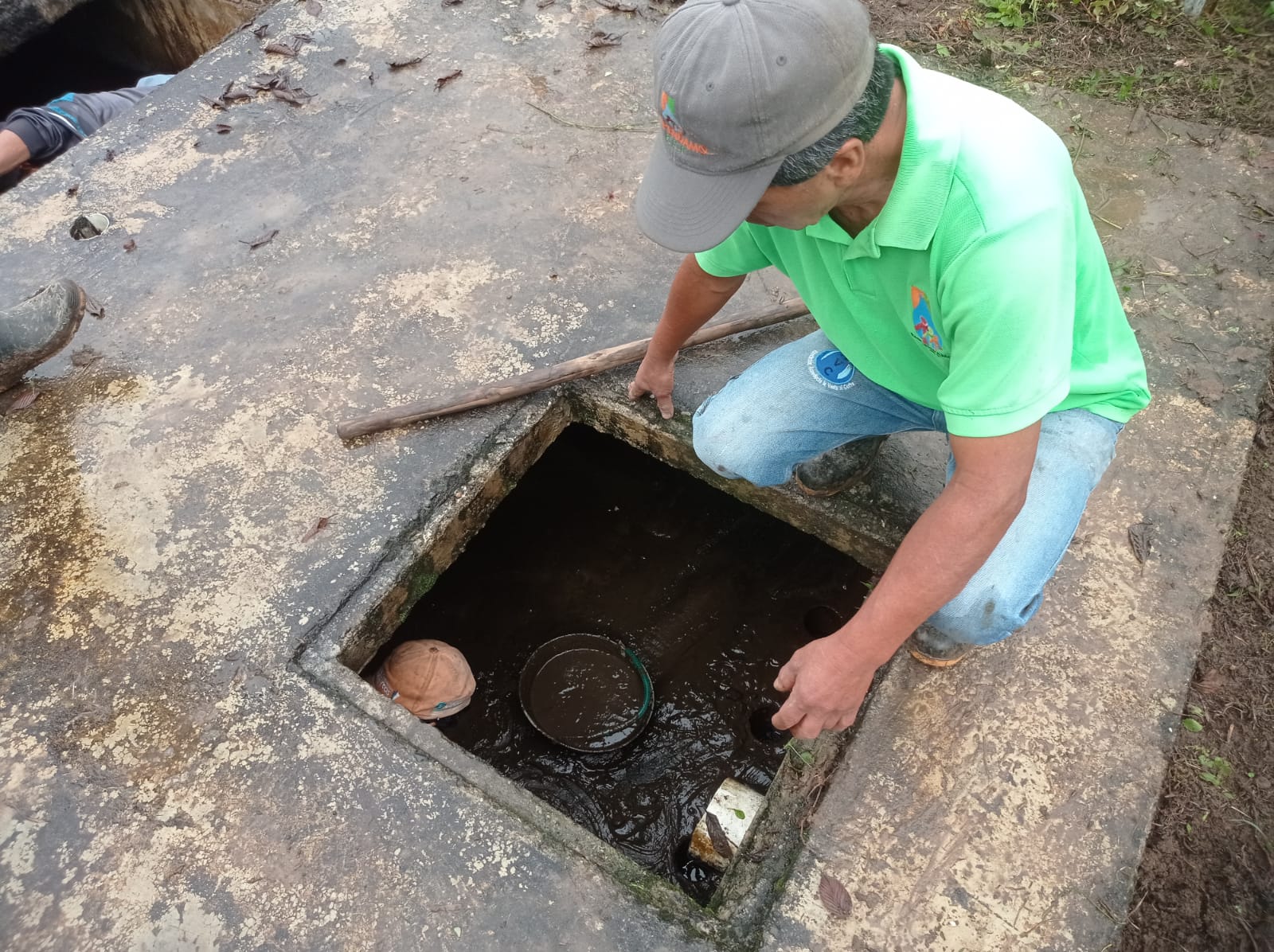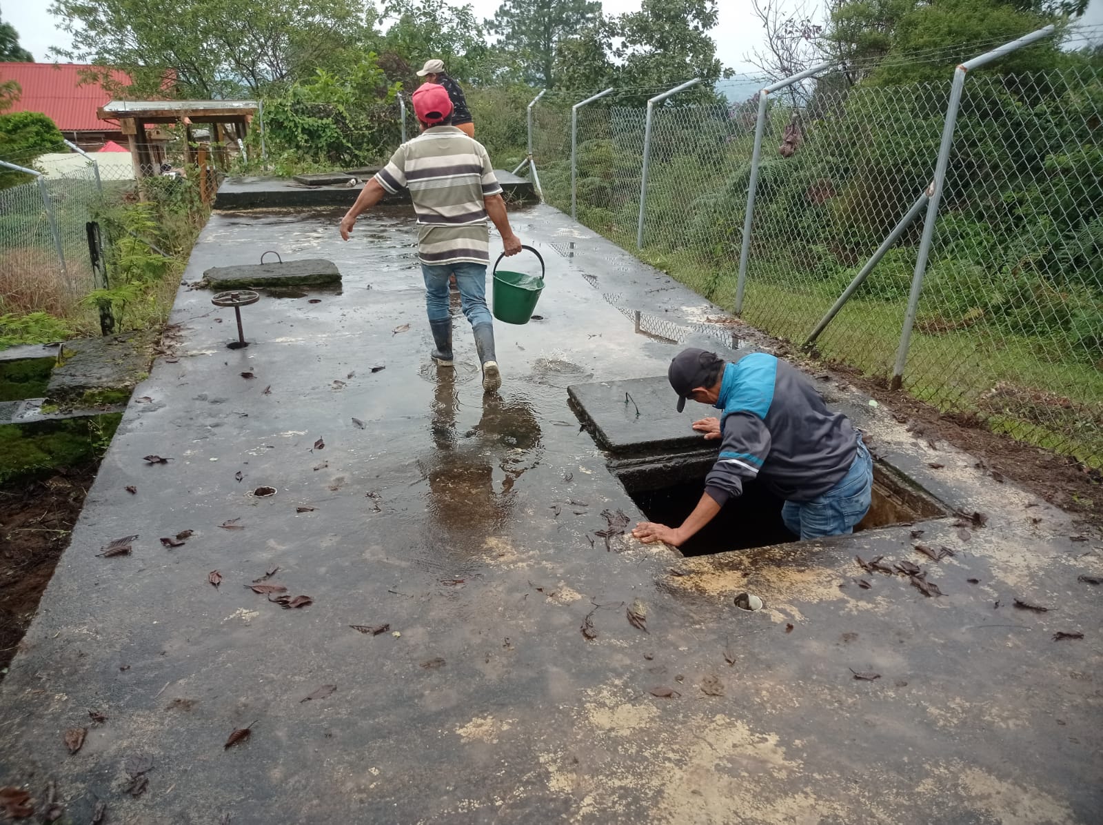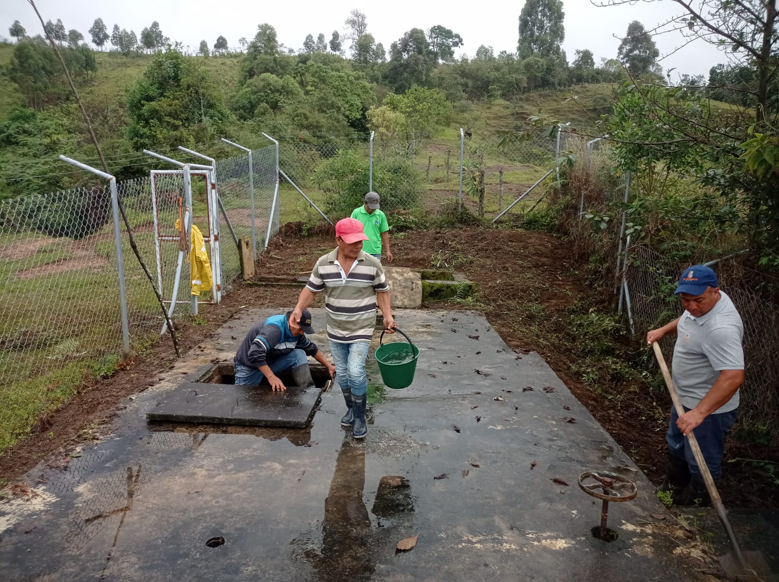 El equipo de fontanería de EMPIENDAMO E.S.P en conjunto con la comunidad realizan mantenimiento a los tanques de Los Tejares